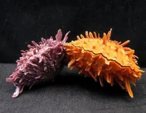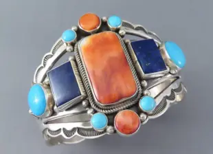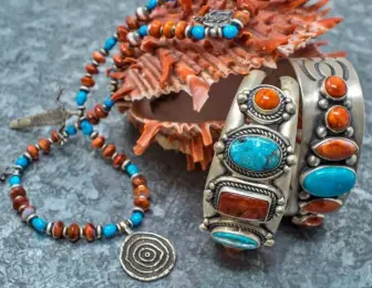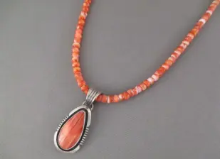 海菊蛤表面带刺,质地坚硬,色彩丰富,主要颜色有橘色、橘红色、红色、紫色,主要用于制作印第安首饰,Zuni部族偏好使用这种材料。